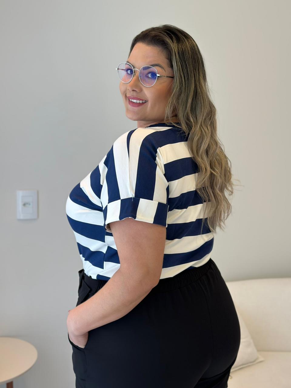 Blusa Jessy – Azul Listrada – Plus Size – 2297