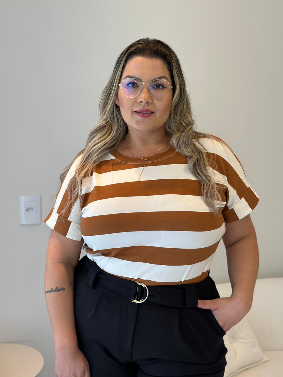 Blusa Jessy – Caramelo Listrada – Plus Size – 2292