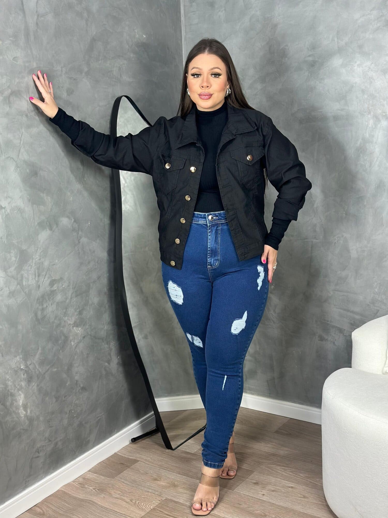 Jaqueta Jeans Lyra – Preta – Plus Size – 1478