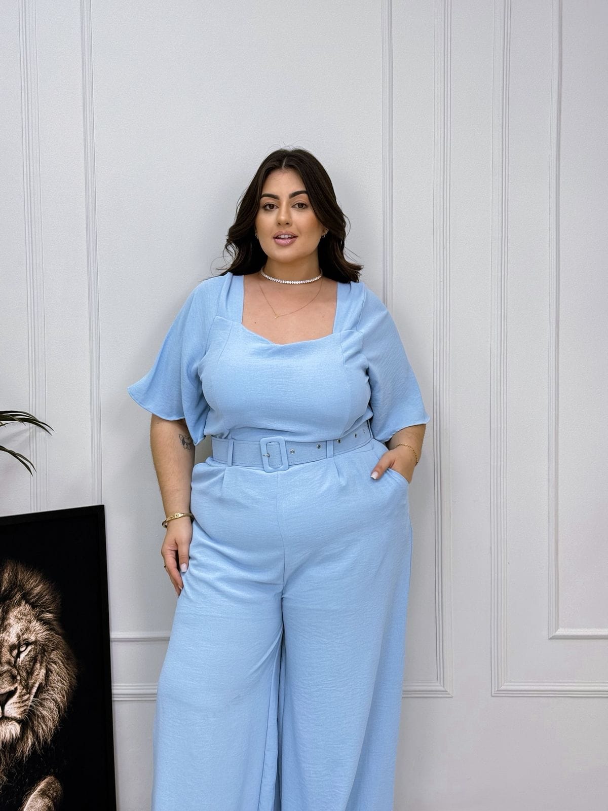 Macacão Vitória – Azul Bebê – Plus Size – 1425