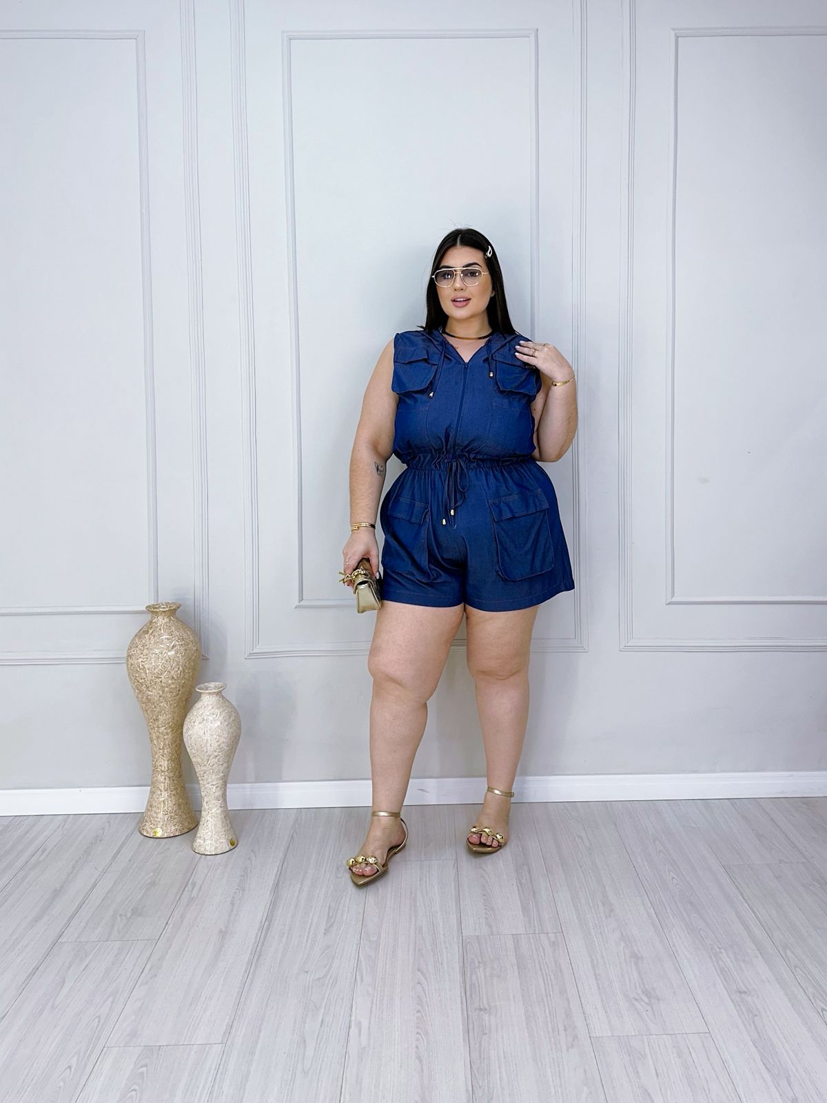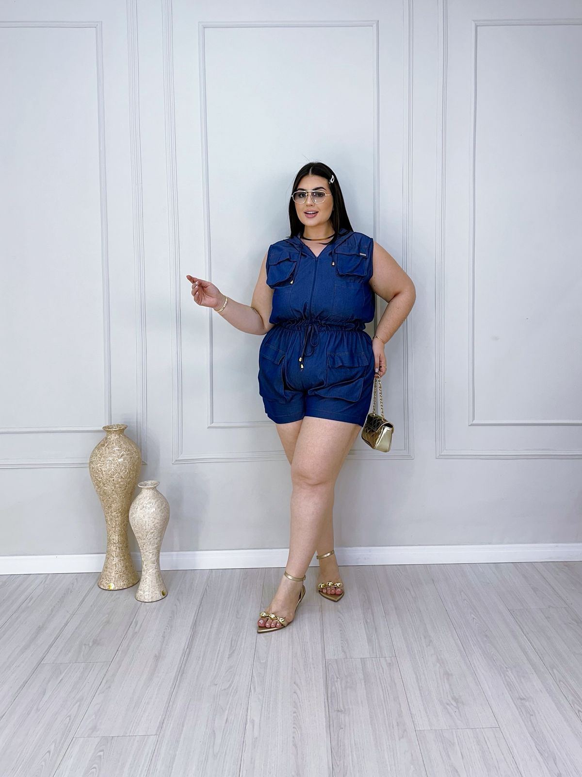 Macaquinho Gris – Azul – Plus Size – 1776