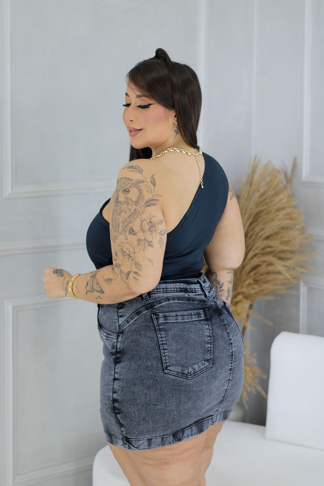 Short Saia Paulina – Jeans – Plus Size – 1624